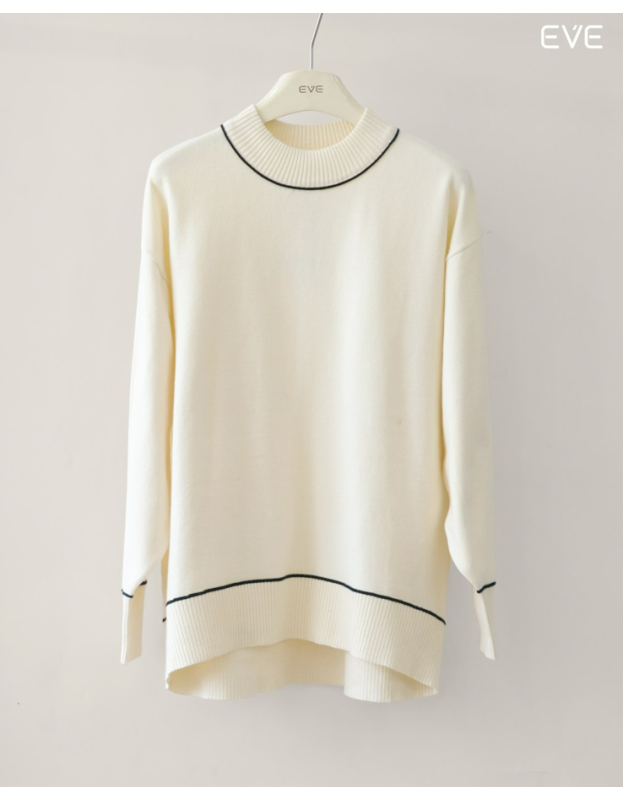 Embrace comfort and style with the Tipped Sweater, a cozy piece with a subtle, chic detail. This relaxed-fit sweater features a soft knit with a classic crewneck. The modern silhouette is highlighted by delicate contrast tipping along the neckline, hem, and cuffs, adding a clean, sporty edge to the design. With its dropped shoulders and comfortable drape, this sweater is perfect for effortlessly layering on cooler days. Available in three essential colors—a vibrant light blue, crisp off-white, and classic black—it's an essential for your fall and winter rotation.