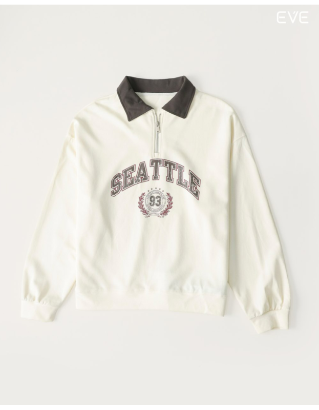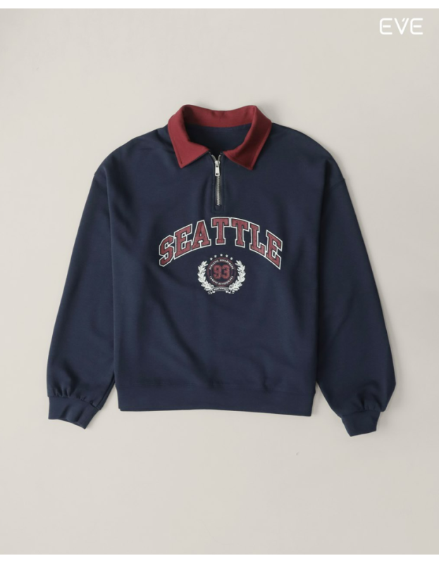 Embrace a stylish, collegiate-inspired look with the Collegiate Half-Zip Sweatshirt. This cozy, long-sleeve top features a comfortable relaxed fit and a sporty half-zip closure. The standout detail is the preppy contrast collar and the bold, vintage-style "SEATTLE" graphic on the chest, giving it a classic varsity aesthetic. Available in rich color combinations, including deep burgundy with a white collar and a versatile navy, this sweatshirt is the perfect piece to effortlessly add color and cozy style to your casual rotation.