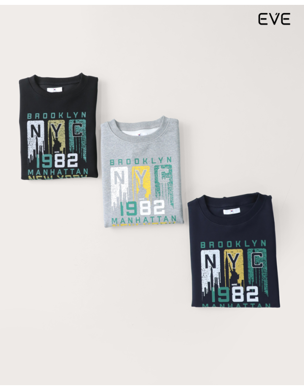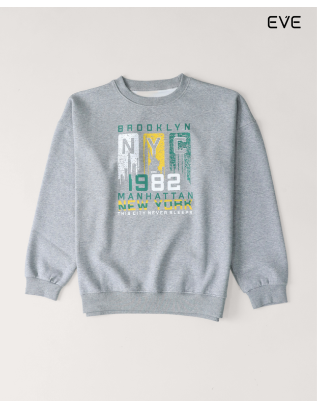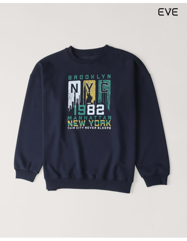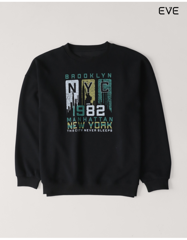 Capture the energy of the city that never sleeps with the NYC Graphic Sweatshirt. This cozy crewneck features a vibrant, distressed graphic print that proudly displays "BROOKLYN NYC 1982 MANHATTAN NEW YORK" with a bold cityscape design. Crafted from a soft, comfortable fleece, this sweatshirt has a relaxed fit perfect for layering on cooler days. Available in essential colors—a deep navy, classic black, and casual gray heather—it's the perfect piece to add an effortlessly cool, vintage urban feel to your casual rotation.