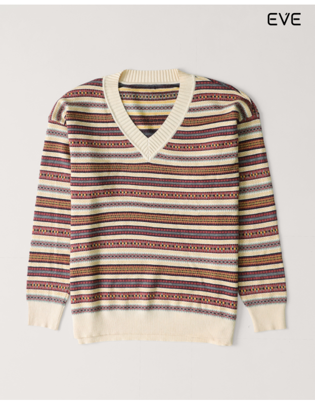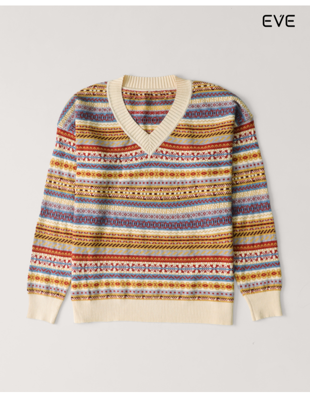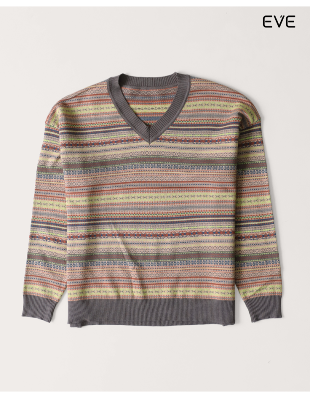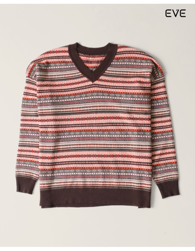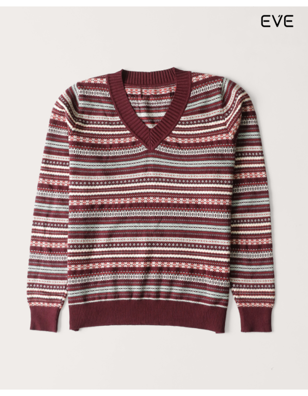 Step into cozy, eclectic style with the Patterned V-Neck Sweater. This eye-catching, long-sleeve knit features a classic V-neckline and an all-over intricate Fair Isle or global-inspired stripe pattern in a rich, multi-colored palette. The fine knit fabric offers a comfortable, versatile fit, making it perfect for layering over a collared shirt or wearing on its own. With numerous vibrant and earthy color combinations to choose from, this sweater is the perfect statement piece to add warmth and unique texture to your cool-weather wardrobe.