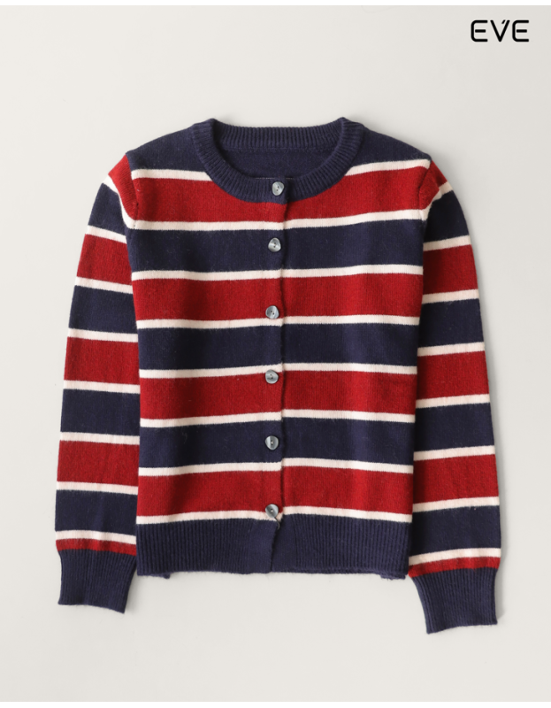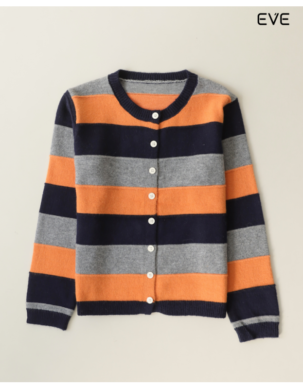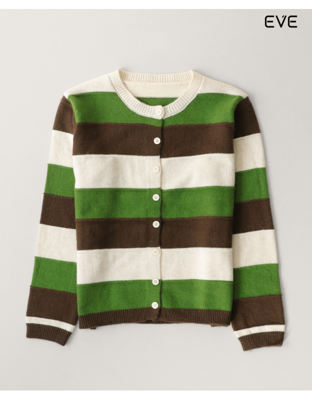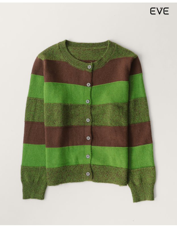 Make a vibrant statement with the Striped Cardigan, a cozy layer defined by its playful use of color. This long-sleeve knit features a classic round neckline and a clean button-down front. The soft fabric is patterned with bold, wide horizontal stripes and sometimes features a subtle textured or color-blocked feel. Available in striking, eye-catching color combinations—such as green and brown or orange, navy, and red—this cardigan is the perfect piece to add warmth, personality, and a lively pop of color to your cool-weather layering.