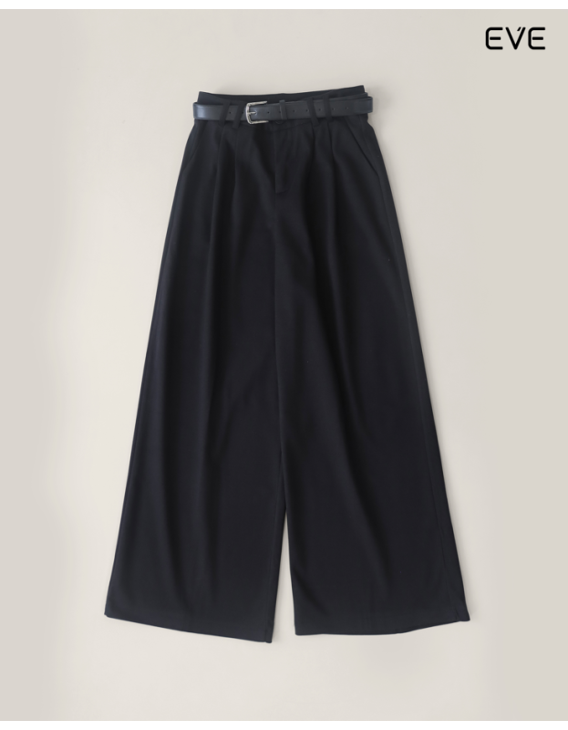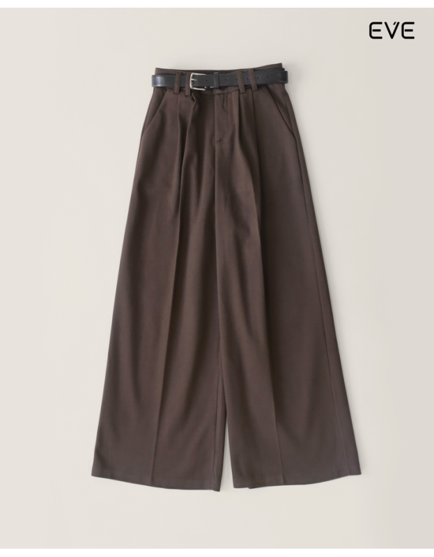 Achieve an effortlessly sophisticated look with the Pleated Wide-Leg Trousers. These statement pants feature a dramatic wide-leg silhouette and a flattering high-waisted fit, offering superb drape and movement. The tailored design includes prominent double front pleats and is often finished with a smart, removable faux leather belt (as pictured). Crafted from a structured, smooth fabric, these trousers are available in essential, rich tones—classic black, warm brown, and textured charcoal gray—making them perfect for elevating both office wear and chic casual outfits.