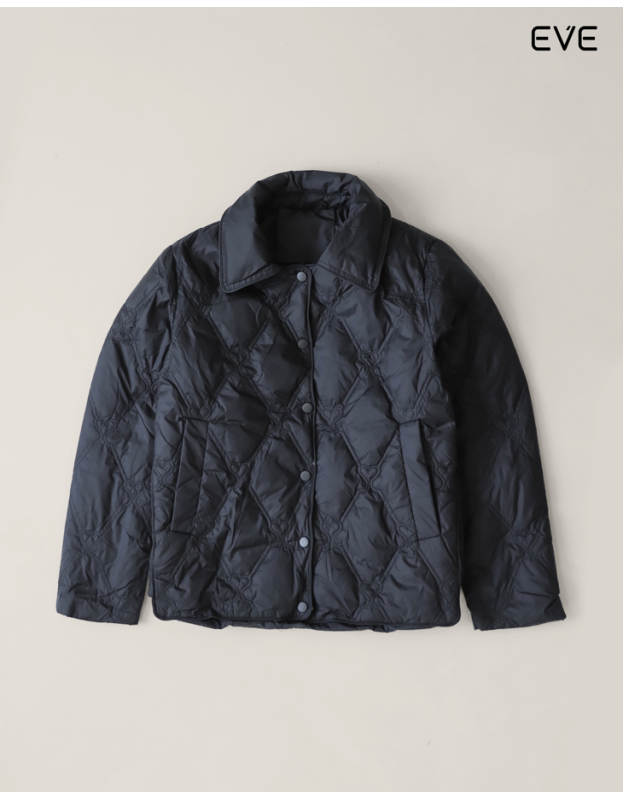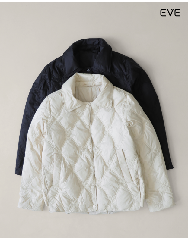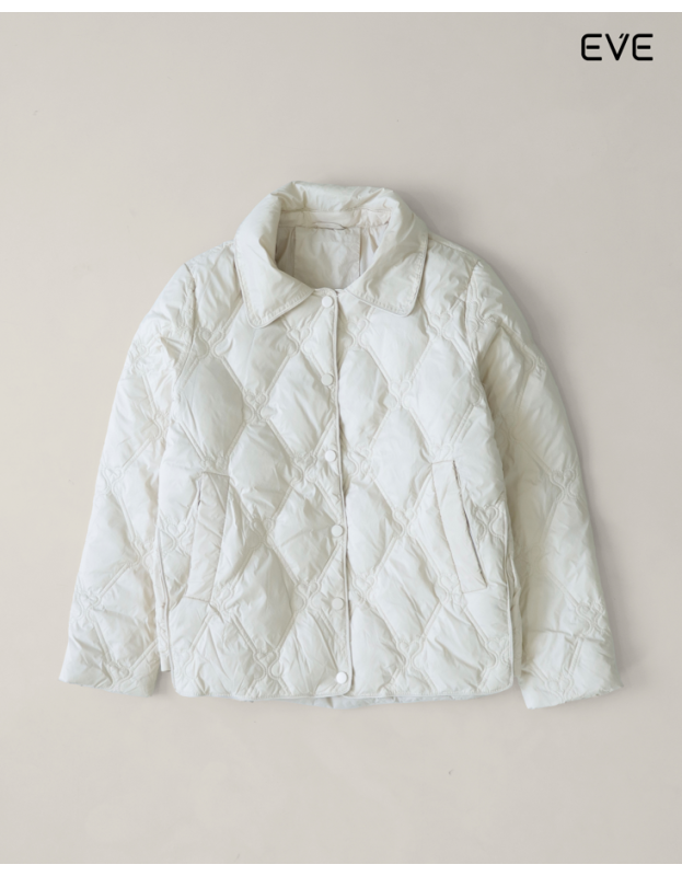 The Diamond Quilted Jacket is an essential layer for sophisticated, lightweight warmth. This stylish jacket features a classic fold-down collar and a clean snap-button front closure. The entire body is patterned with distinctive diamond quilting, adding subtle texture and ensuring comfortable insulation without bulk. With a relaxed, versatile fit, this jacket is perfect for transitional weather and is available in essential neutrals: crisp off-white and classic black.