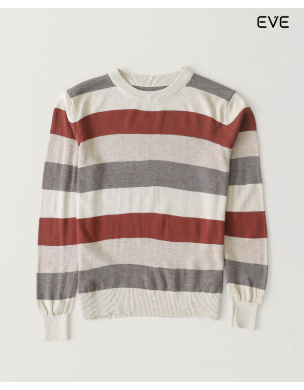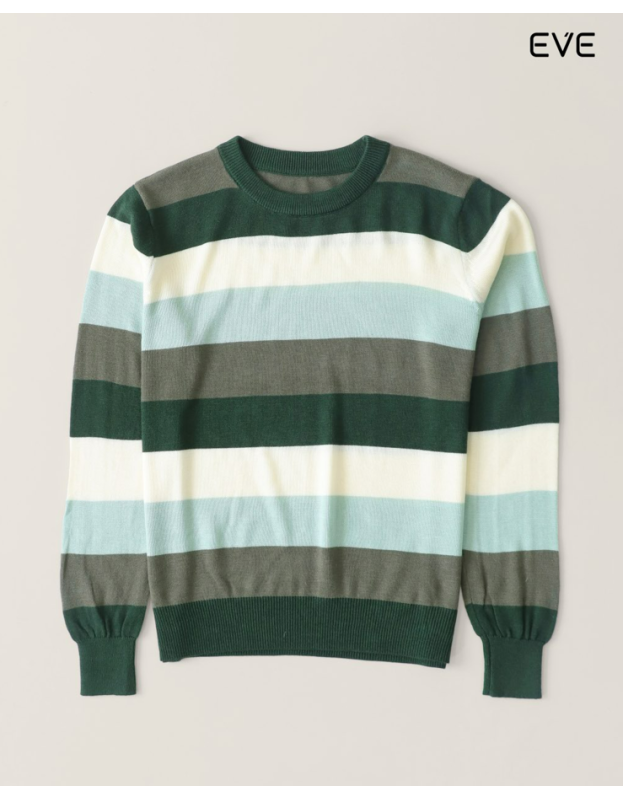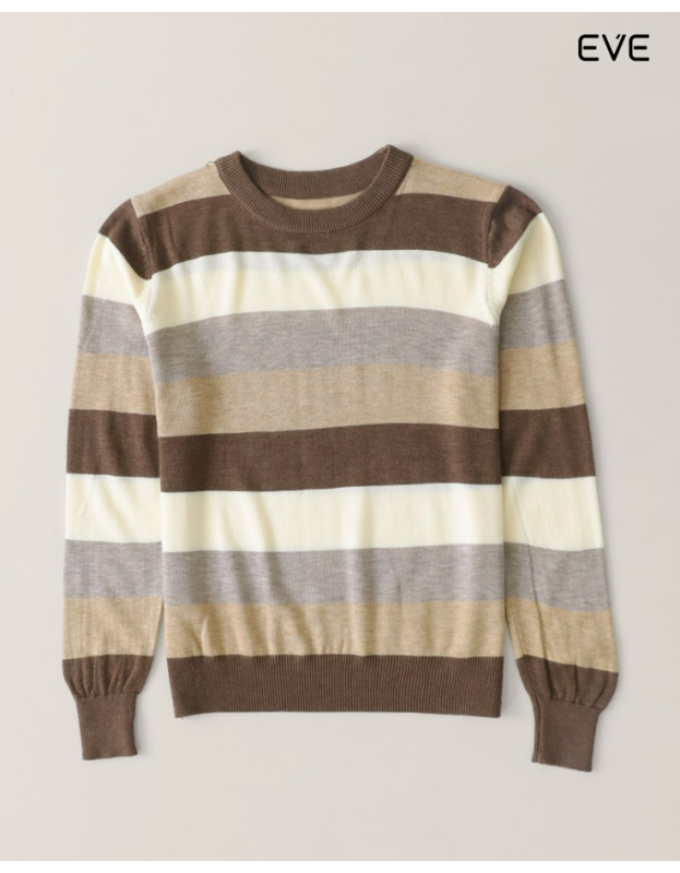 Refresh your knitwear collection with the Women's Striped Crewneck Sweater, a timeless piece designed for comfort and versatility. This fine-gauge sweater features a classic crew neckline and long sleeves, finished with comfortable ribbed cuffs and hem. It is available in a selection of refined color palettes: a warm, earthy combination of Brown, Cream, and Tan stripes for a neutral, sophisticated look; a striking palette featuring Deep Green, Teal, and Cream; and a bolder option with Rust, Grey, and Beige. Perfect for layering under jackets or wearing solo, the EVE Striped Crewneck is an essential staple that transitions effortlessly through the seasons while adding a polished stripe of color to any outfit.