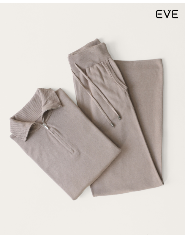 Chic Comfort Redefined: The Quarter-Zip Ribbed Co-ord Set